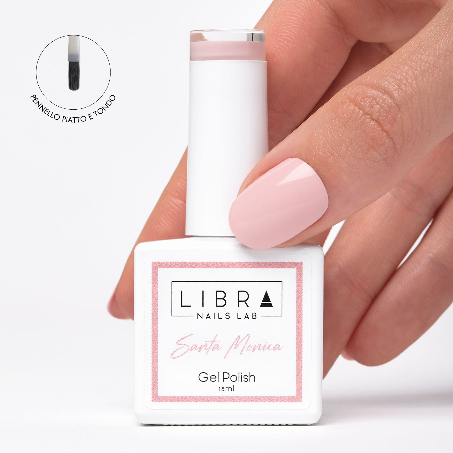 Santa Monica è un Semipermanente di colore rosa pesca chiaro. Nonostante sia un colore pastello, la sua formula, sempre Hema e Di-Hema free, garantisce una coprenza impeccabile senza creare spessore ed alterare la struttura.