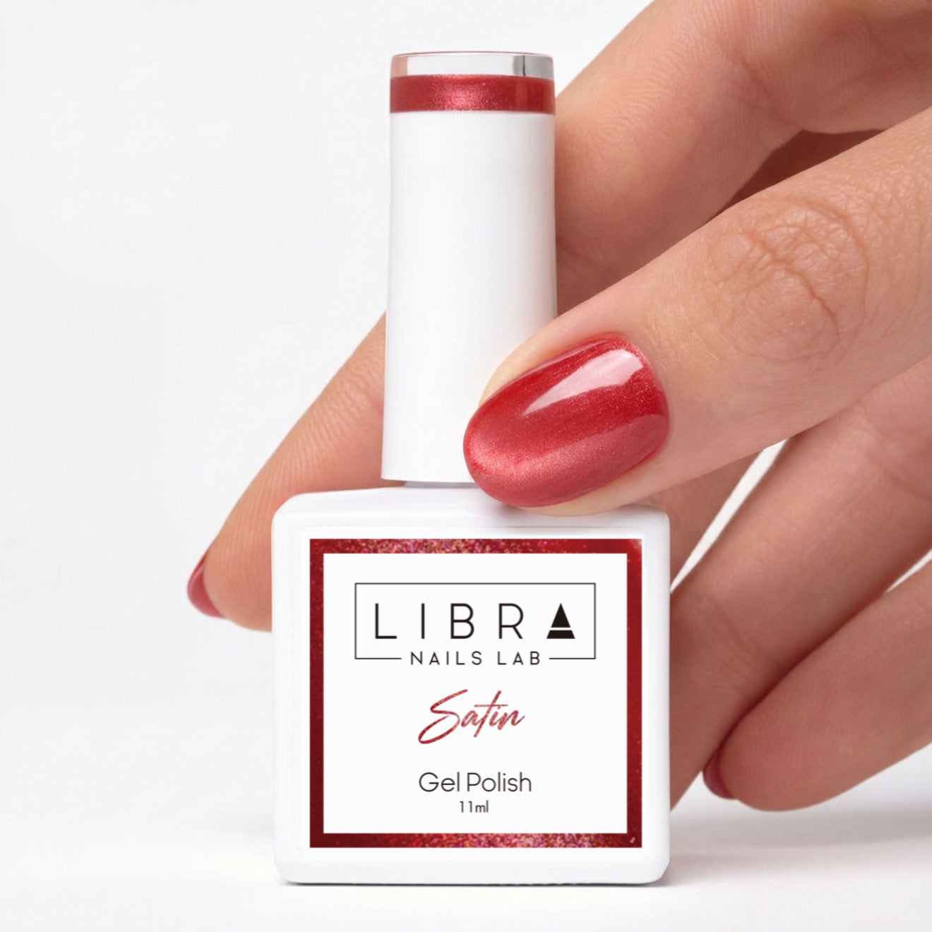 Satin è un rosso raffinato dall’effetto seta, morbido e uniforme. La superficie appare liscia e vellutata, senza glitter visibili, per un risultato elegante e sofisticato.